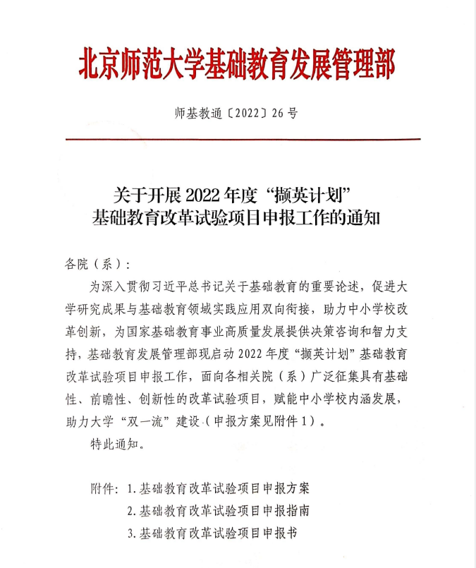 关于开展2022年度“撷英计划”基础教育改革试验项目申报工作的通知