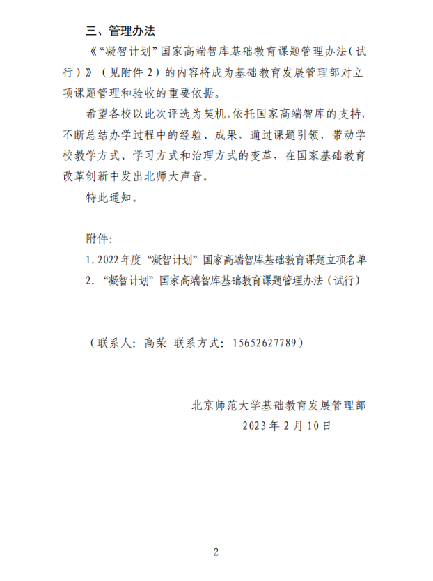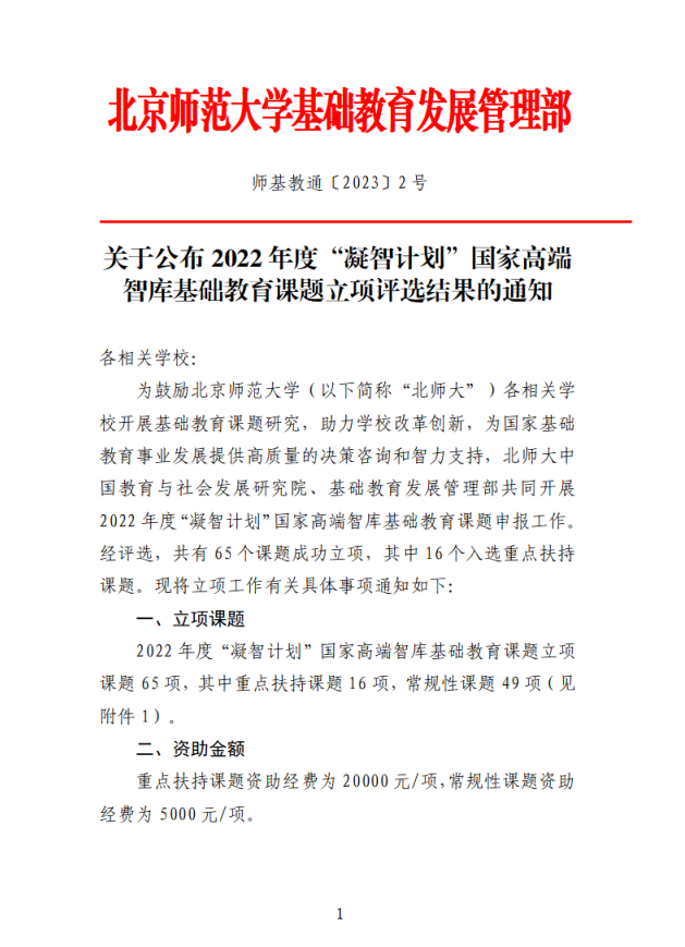 师基教通〔2023〕2号 关于公布2022年度“凝智计划”国家高端智库基础教育课题立项评选结果的通知.pdf