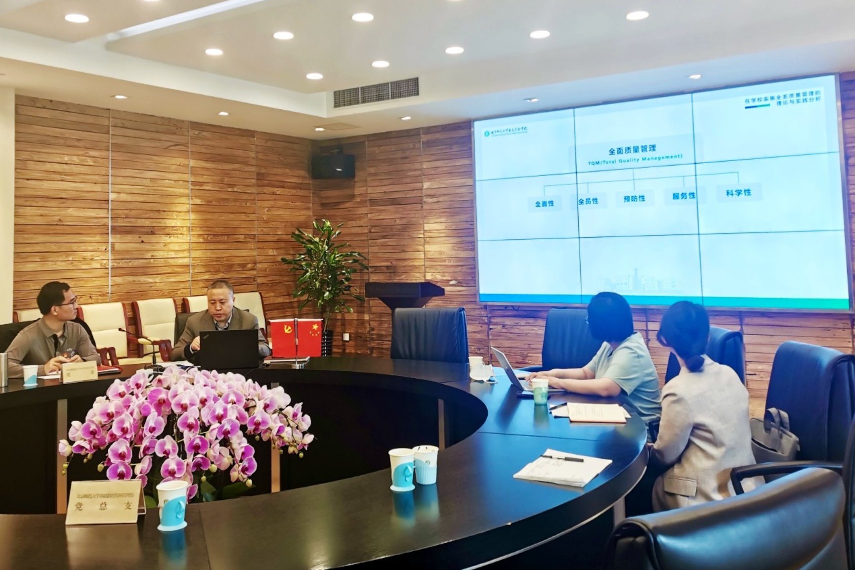 主题调研环节,基教部督导与内部控制办公室相关负责人与亚太实验学校党委书记、校长徐向东就学校质量保证体系开展调研,并就相关问题进行充分沟通交流。