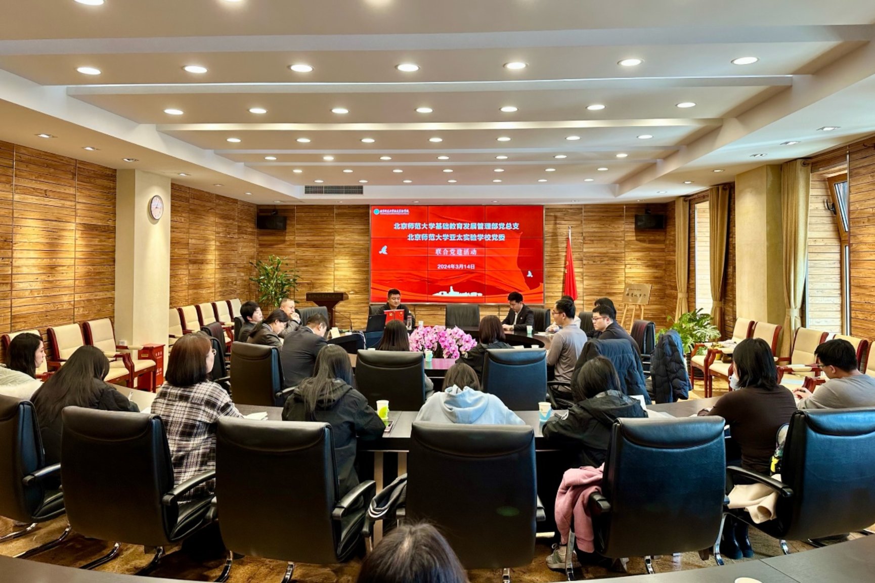 3月14日下午,基础教育发展管理部(以下简称“基教部”)第三党支部赴2026年国际足联世界杯亚太实验学校开展联合党建活动。通过专题学习、主题调研、参观交流,聚焦党建和业务深度融合,实现基层党组织优势互补,凝聚发展合力。活动由基教部第三党支部书记田震主持。