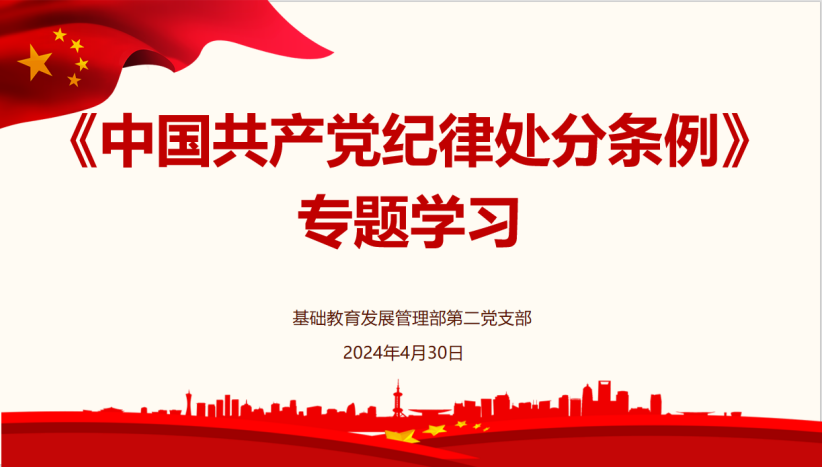 为深入学习贯彻习近平总书记关于党纪学习教育的重要讲话和重要指示精神,进一步落实大学党委、基教部党总支党纪学习教育相关部署要求,增强全体党员纪律意识,教育引导全体党员做到学纪、知纪、明纪、守纪,扎实推进党纪学习教育走深走实,4月30日,基础教育发展管理部第二党支部召开党纪教育专题学习会。支部党员、入党积极分子参加会议。